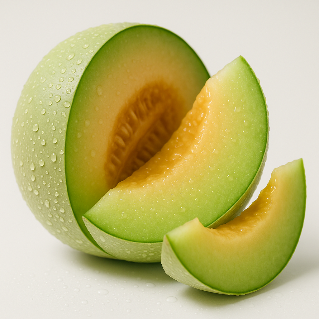 Faceta principal: Melão fresco, verde e suculento